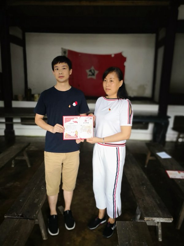 在紅十三軍軍部舊址會(huì)議室,全體黨員在黨旗下重溫入黨誓詞。支部為六、七月份入黨的白榮貴、晏雪松兩位同志過政治生日,發(fā)放生日賀卡。