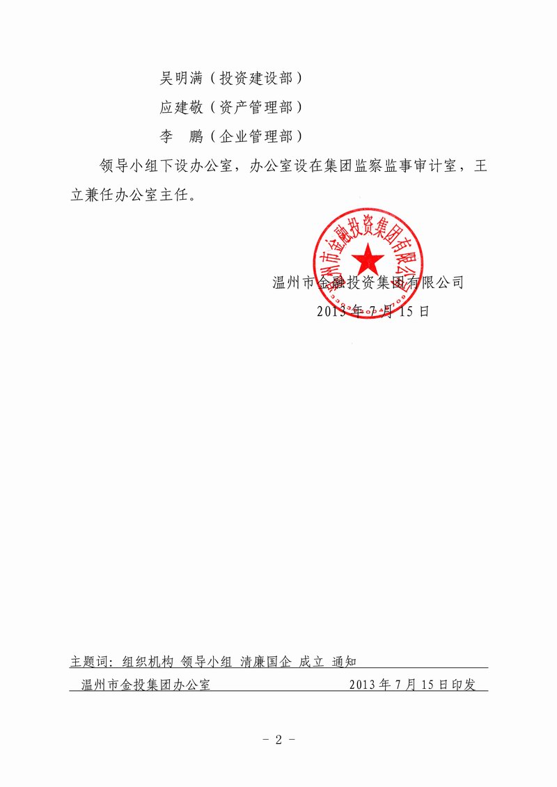 溫金投〔2013〕89號(hào)關(guān)于成立創(chuàng)建“清廉國(guó)企”工作領(lǐng)導(dǎo)小組的通知 [清廉國(guó)企]